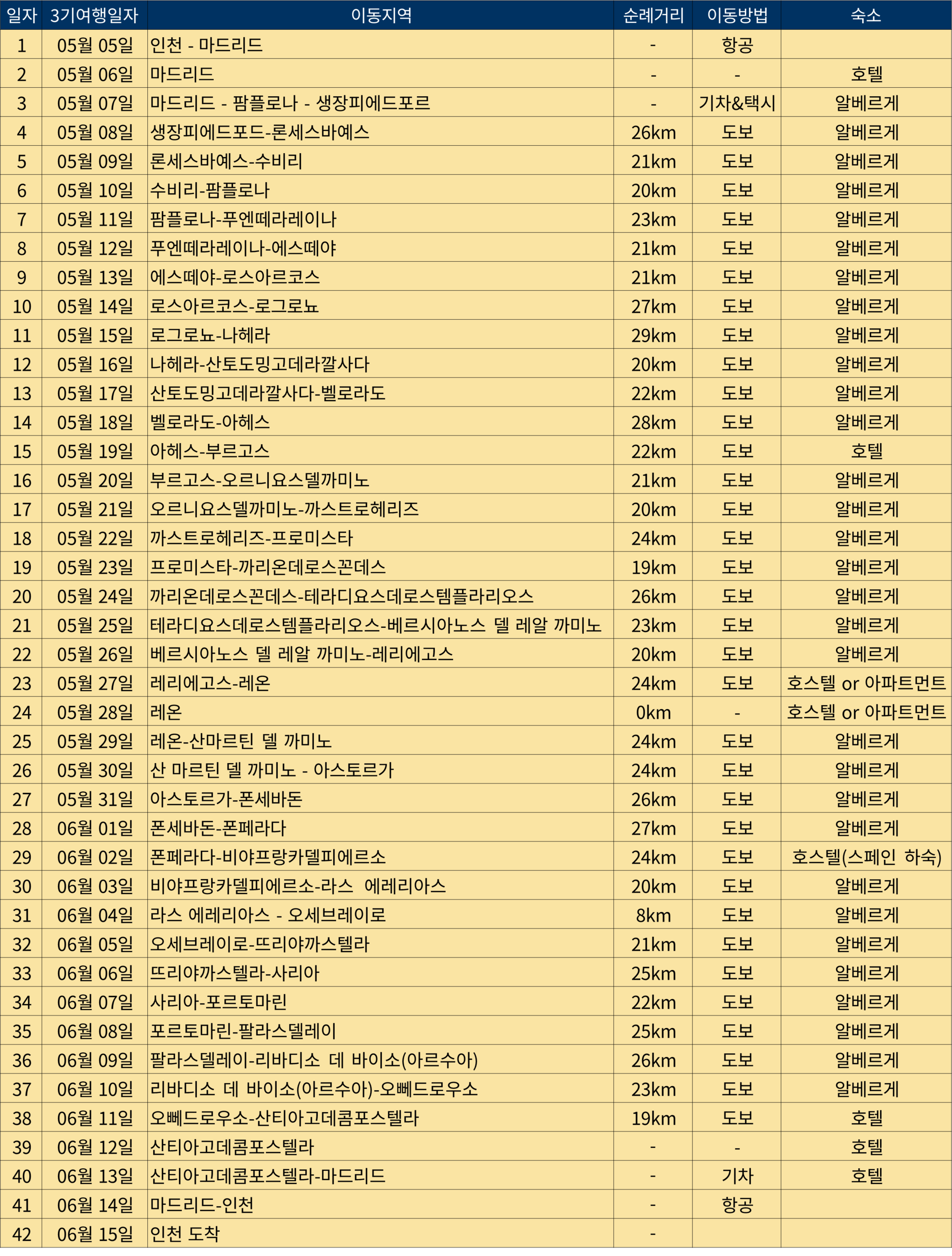 산티아고라이프원정대 3기 상세일정