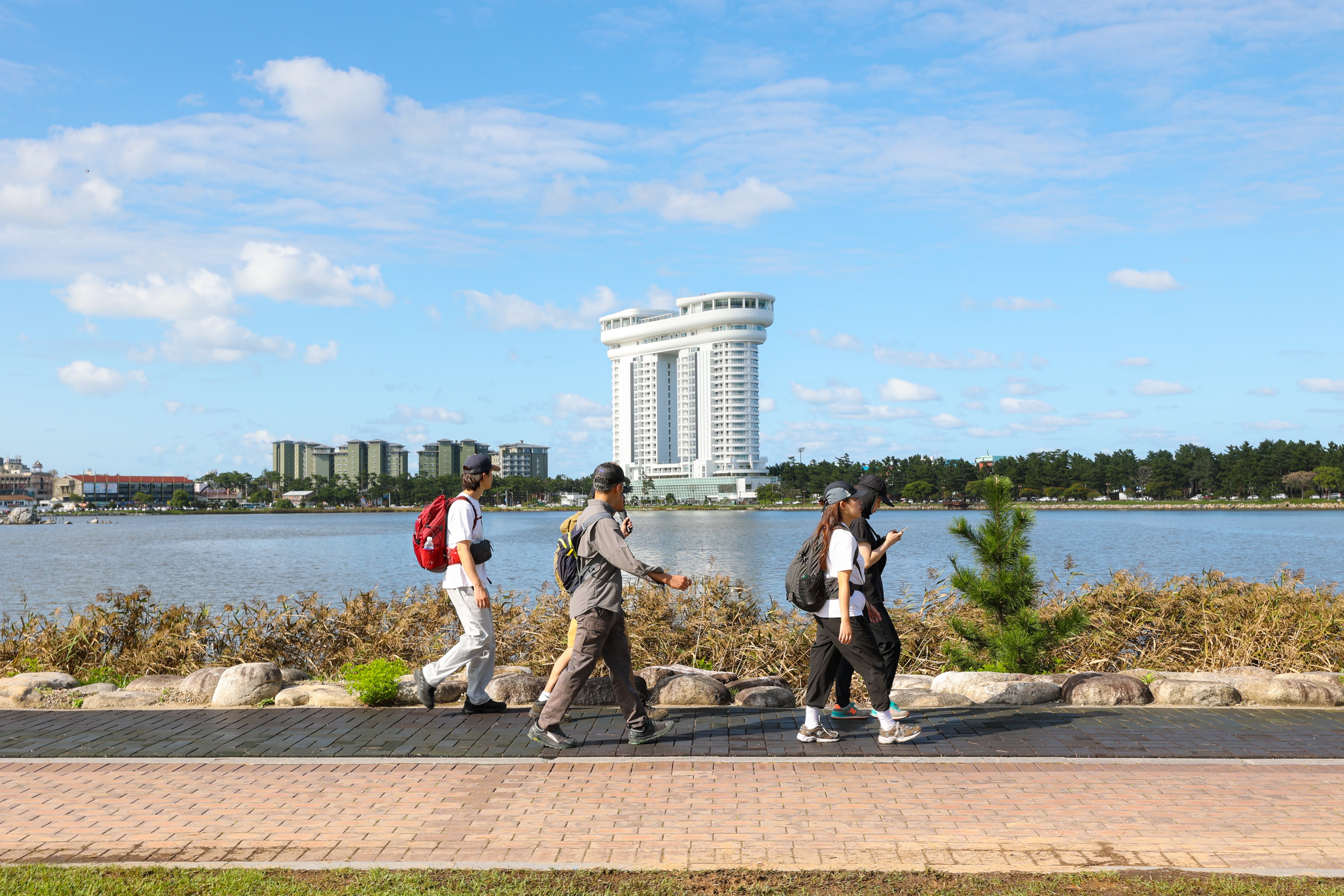 저는 경포호를 처음 와봤는데요, 호수가 일단 정말 넓어서 경관이 탁 트이고, 산책하거나 걷기 좋게 잘 정비되어 있어요. 가족 단위의 사람들도 많았고, 운동하시는 분들, 놀러오신 분들 등 많은 사람들이 경포호의 길을 각자의 방법으로 즐기고 계셨어요.