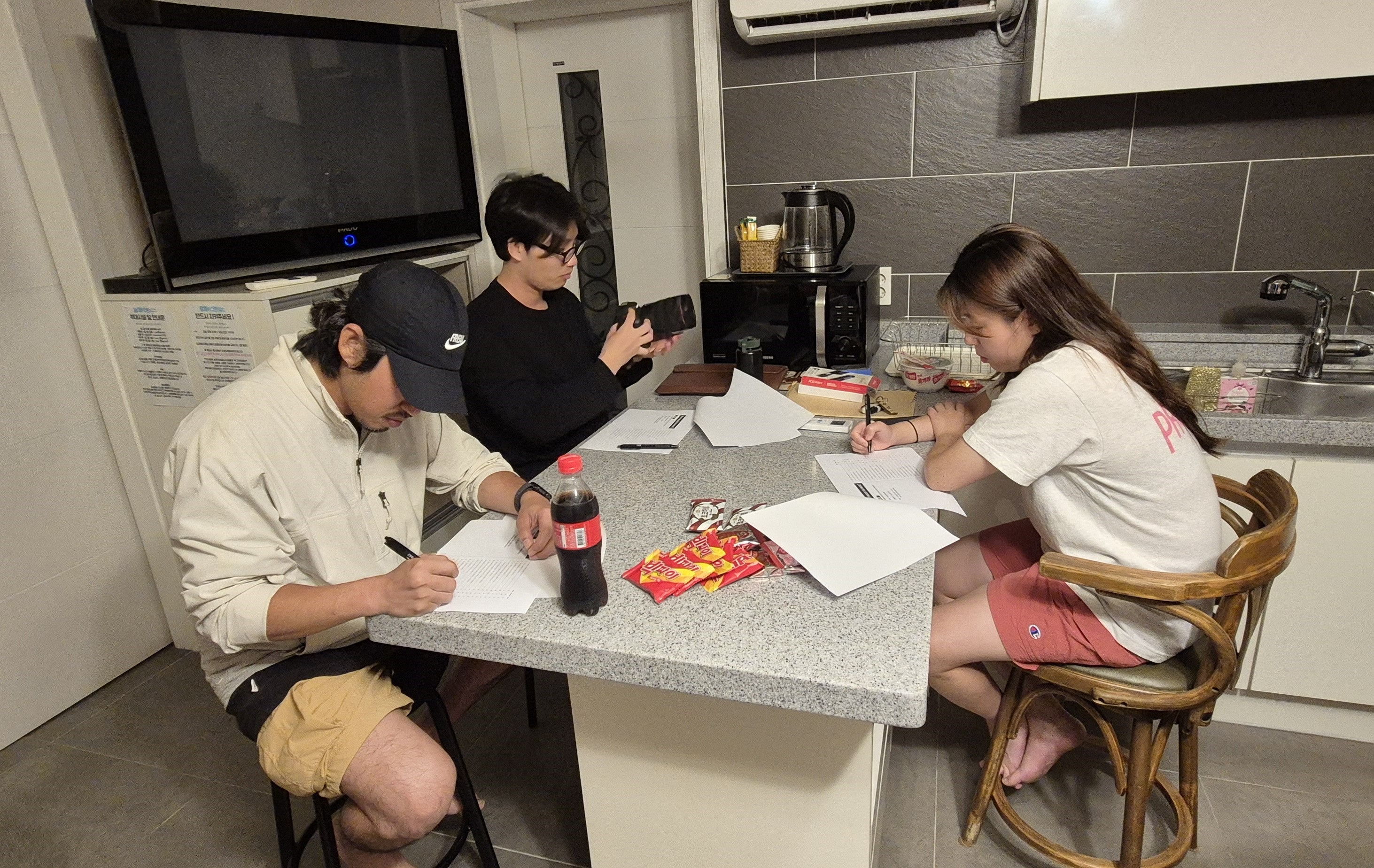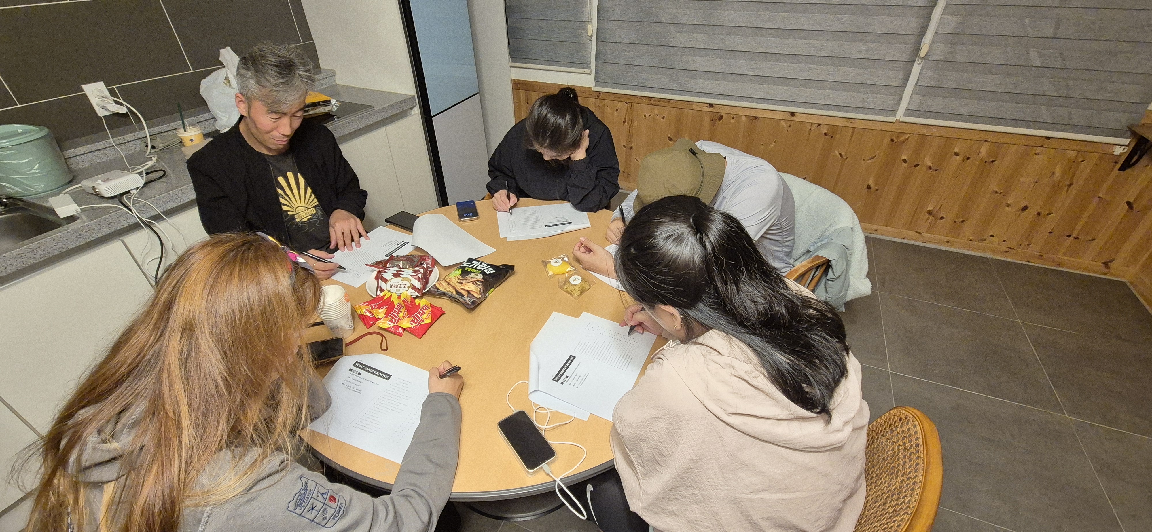 저무는 밤, 지나가는 시간과 인연이 아쉬워 옹기종기 앉아 한 입, 두 입, 한 잔, 두 잔 하며 각자의 이야기를 풀어내는 워커스들의 1일차 밤이었습니다-