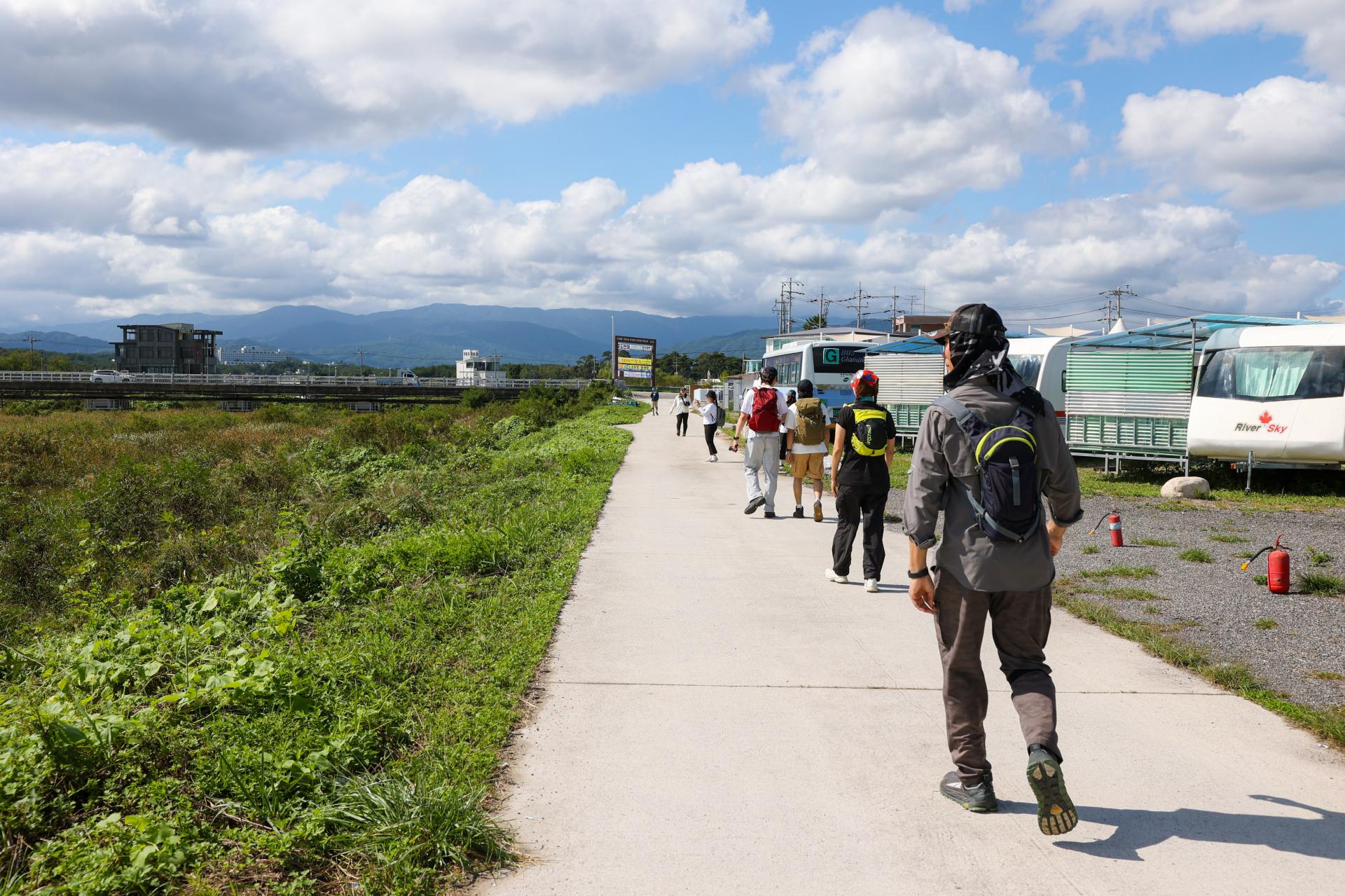 다들 만난 지 얼마 안되어서 어색했지만, 따로 또 같이 걸으면서 차츰 대화를 터 나갔어요. 방금까지는 이 사람과 대화하다가 조금 지나서 보폭이 맞는 저 사람과 대화를 하게 되는 경험. 다양한 사람들과 이야기를 나누다 쌓인 내 생각을 정리하기 위해 혹은 나를 곱씹어보기 위해 혼자 걷는 시간까지.
