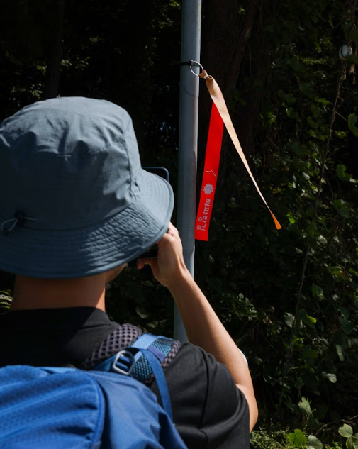 안전하게 방향을 잃지 않고 걸을 수 있도록 이 길을 표시하기 위해 누군가가 길을 따라 걸으며 리본을 매고, 화살표 스티커를 꾹꾹 붙였을 생각을 하니 마음이 따스해졌고요.😊 (산티아고 순례길의 노란 화살표도 생각이 나더라는-)