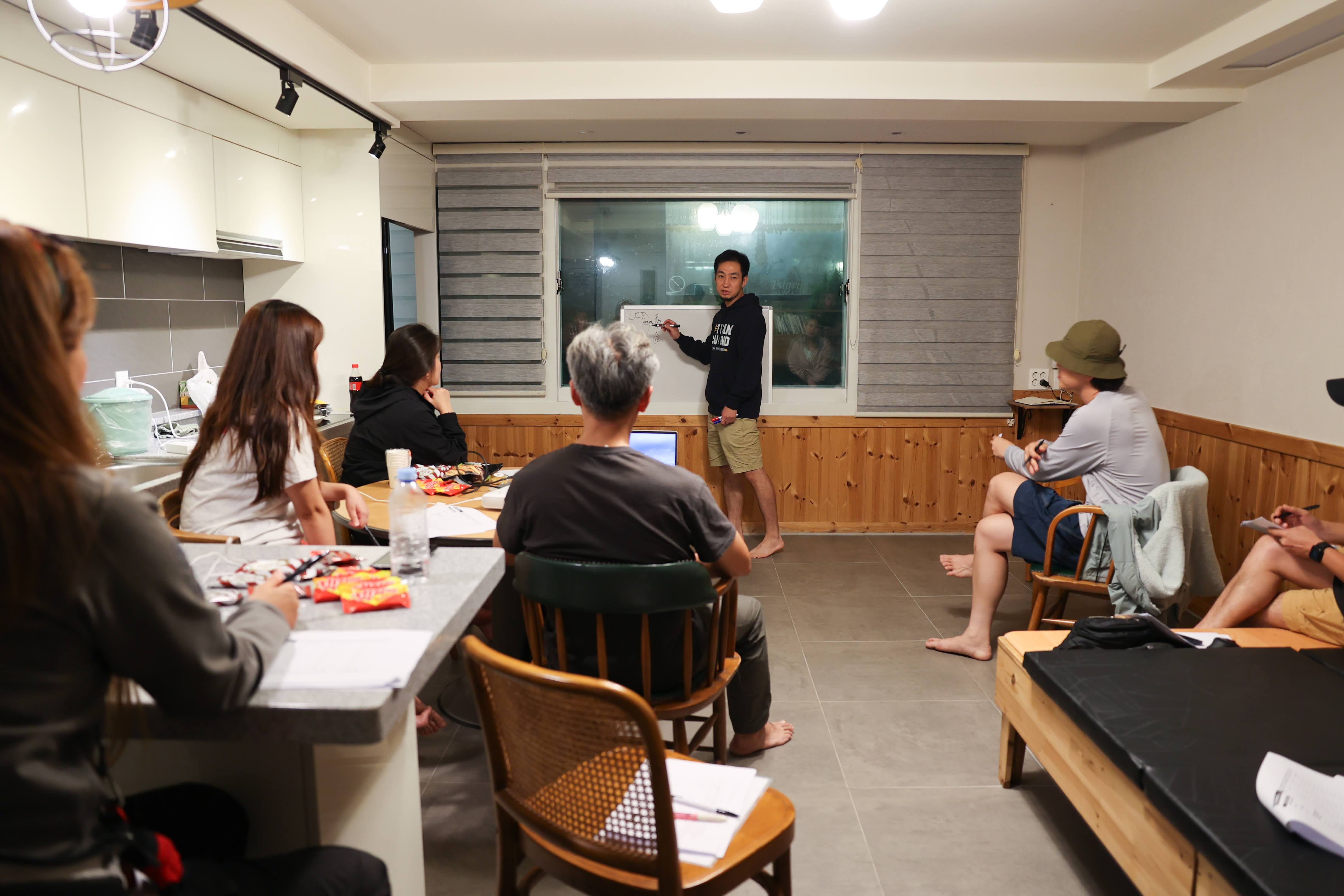 약 두시간 뒤, 다들 잘 쉬고 잘 씻은 뽀송한 모습으로 강연을 듣기 위해 만났어요!