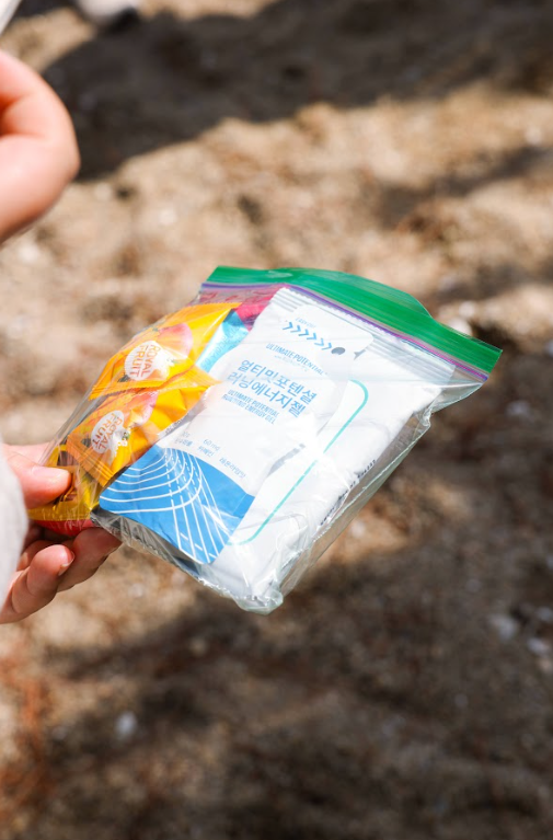 잘 걸을 수 있는 신체 조건도 중요하지만, 에너지를 공급해 줄 수 있는 여분의 간식과 물도 소중해요! ㅎㅎㅎ