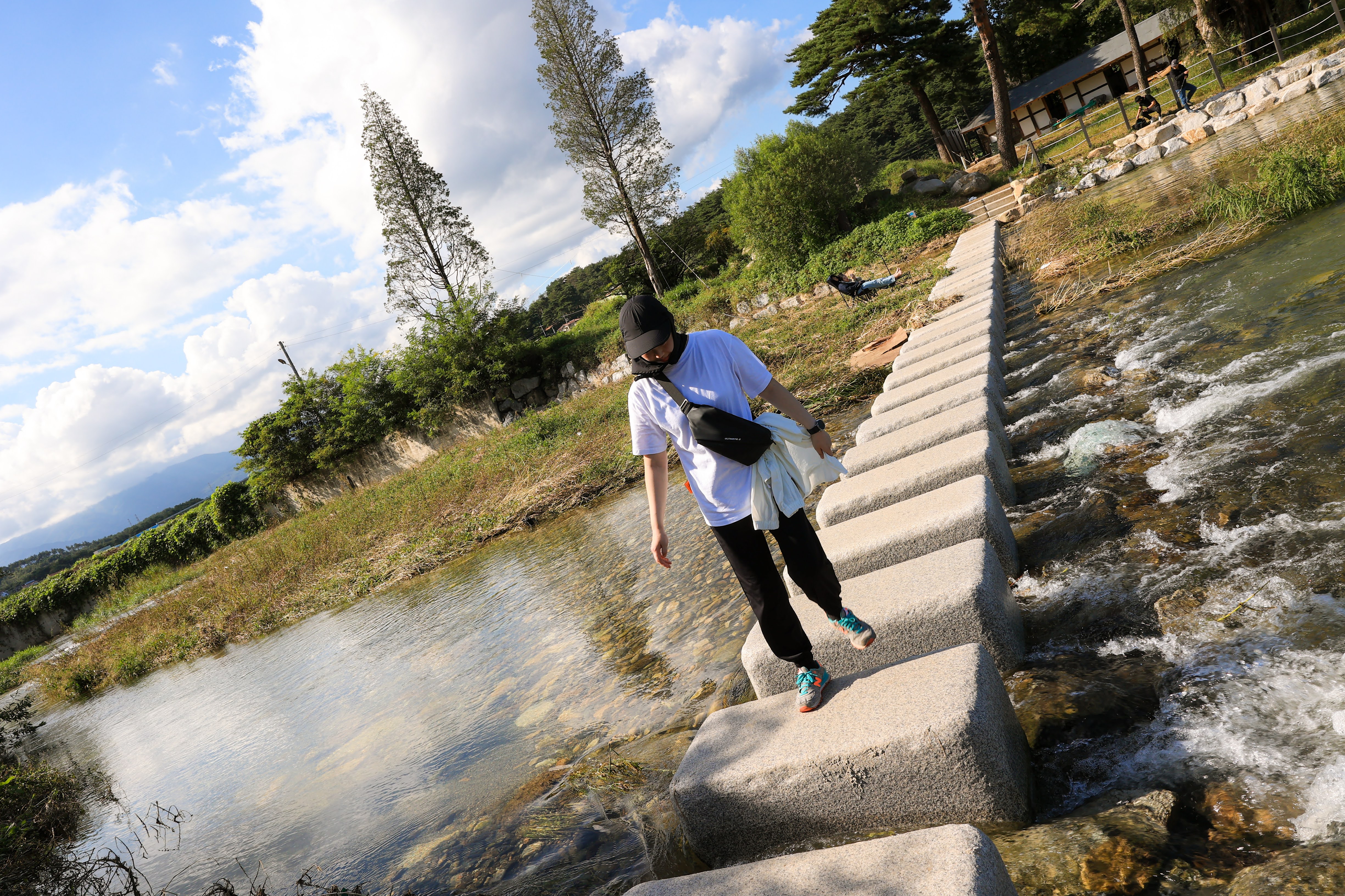 시원하게 흐르는 물 위의 돌다리도 건넜어요