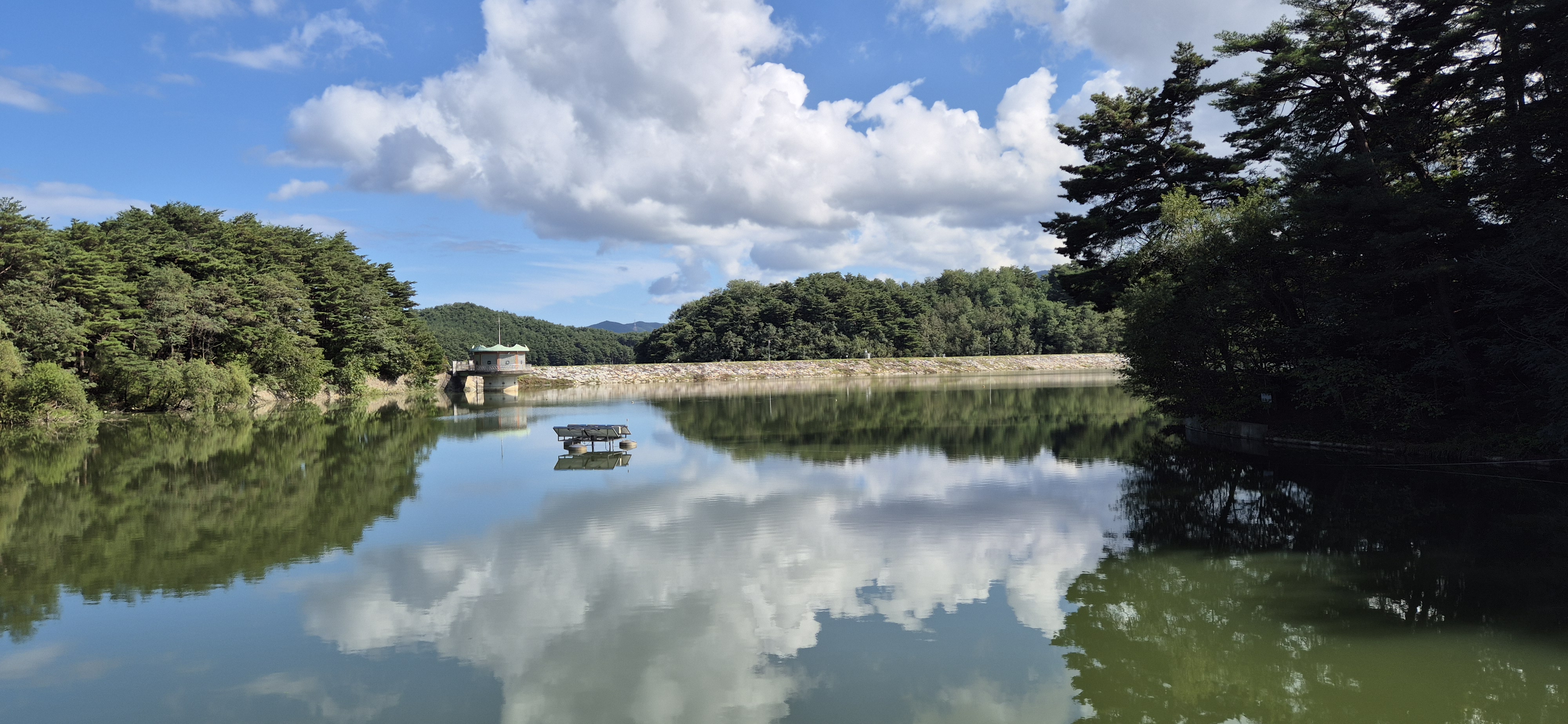 저수지 수질은 그닥 좋아보이지는 않았지만, 파란 하늘을 비추는 넓은 물을 바라보니 평화롭고 좋더라고요.